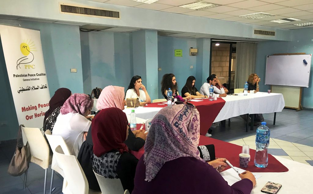 اختتم تحالف السلام الفلسطيني اللقاء الأخير من برنامج التدريب السياسي المتقدم في رام الله حيث استمرت الندوة ليومين، و حضرها وشارك فيها مجموعة من الناشطين/ات من مختلف المحافظات و التوجهات السياسية. استضافت الندوة الصحفي الفلسطيني السيد محمد ضراغمة، حيث قدم خلال الندوة صورة تحليليه سياسية اقتصادية لمبادرة الادارة الامريكية الاخيرة و موقف القيادة الفلسطينية اتجاه المبادرة. شملت الندوة تدريب مع السيدة أروى عبد الرحمن حيث ركزت على مهارات الاتصال والتواصل مع الجمهور ومهارات الحشد والدعم والمناصرة عبر مواقع التواصل الإجتماعي.
