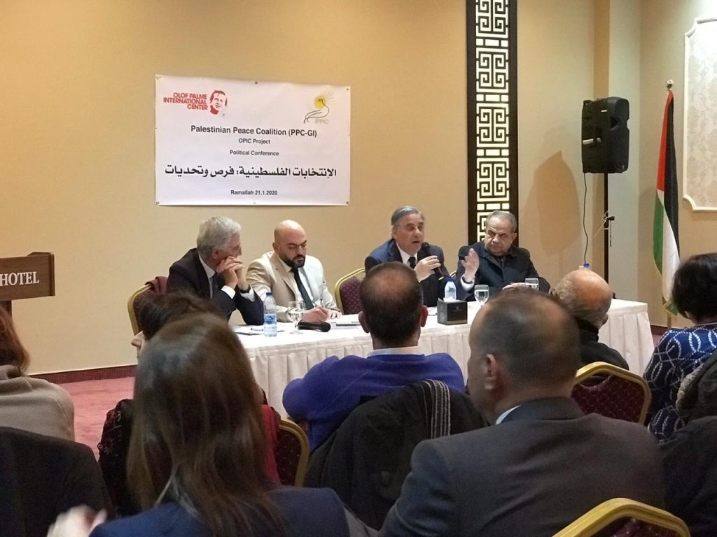أكد المتحدثون في ندوةٍ برام الله، الثلاثاء، أهمية إجراء الانتخابات العامة لتثبيت الكيانية السياسية الفلسطينية وتقويتها بإشراك الجميع فيها، ولو اقتضى الأمر الاشتباك مع إسرائيل سياسياً، داعين القوى والفصائل ومؤسسات المجتمع المدني الى الضغط لإجراء الانتخابات في كافة الأراضي الفلسطينية، بما فيها القدس، وإصدار مرسوم رئاسي يحدد موعدها.